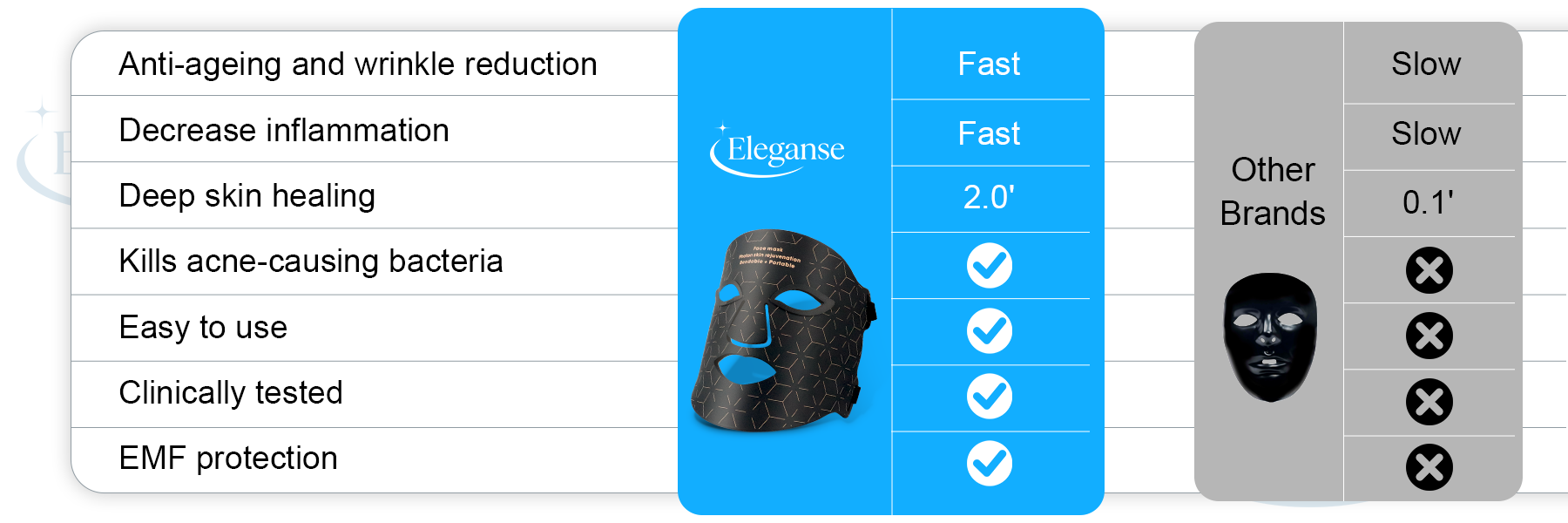 That’s why every feature of the Eleganse LED Mask—from its smart, hands-free design to its targeted phototherapy and comfortable silicone fit—is tailored just for you. It’s not just a beauty tool; it’s your personal “glow restorer,” helping you effortlessly transform your skin and reclaim your radiance. Choose the Eleganse LED Mask to effortlessly savor every moment of self-care.